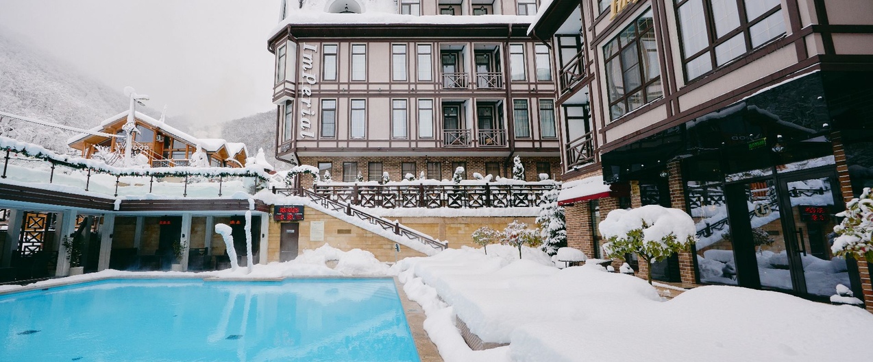 СПА-отель «Грейс Империал» — это роскошный 5-звездочный отель с двумя подогреваемыми бассейнами, расположенный в экологически чистом поселке Эсто-Садок в Красной Поляне. Уютный отель предлагает комфортный отдых на природе, вдали от городского шума. Несмотря на уединенное расположение, вся инфраструктура курорта, а также горнолыжные подъемники находятся в шаговой доступности. Эсто-садок — это развлекательный кластер в горах с множеством ресторанов, баров, торговым центром, кинотеатром, магазинами и фуд-кортами. Здесь также есть казино.