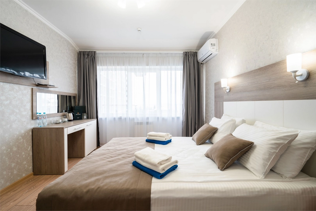 Номер рассчитанный на два основных места 18 кв.м. В комнате предусмотрено наличие либо одной двуспальной, либо двух односпальных кроватей. Номер оборудован всем необходимым для комфортного отдыха. Номер расположен в корпусе 3.