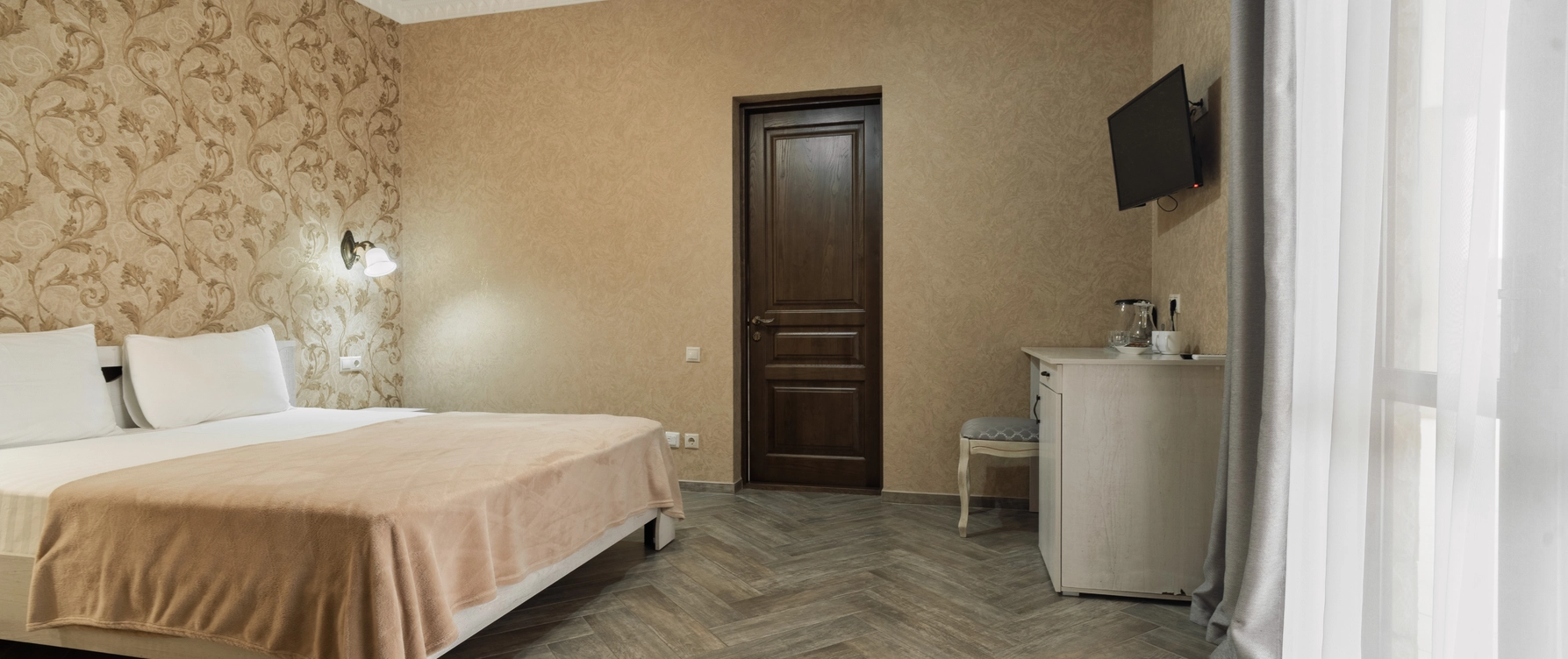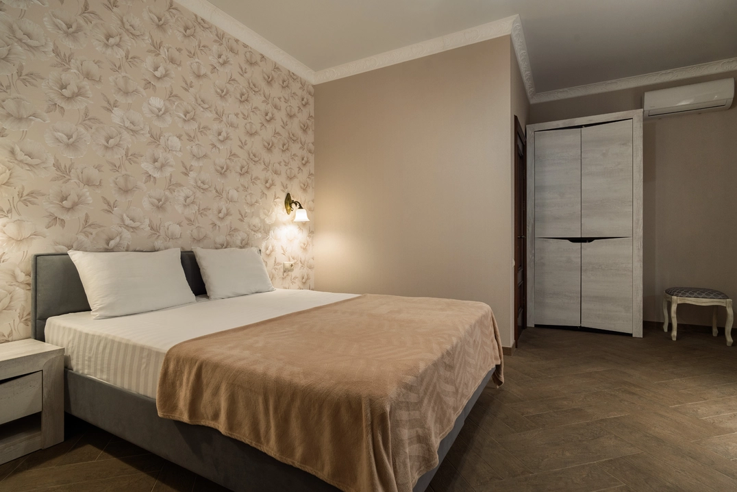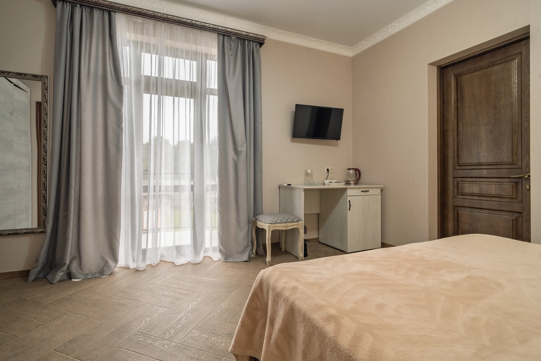Роскошный номер с двуспальной либо раздельными кроватями и с балконом. Максимальное количество гостей до 3 человек. Площадь номера 19-22 кв.м.