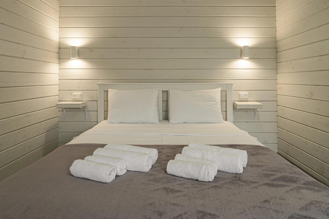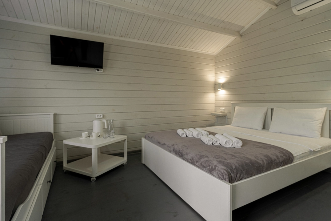 Насладитесь спокойствием и уединением в уютных однокомнатных домиках, зная, что всё необходимое для комфортного пребывания у вас под рукой. Предназначен для комфортного размещения 2-4 человек.
