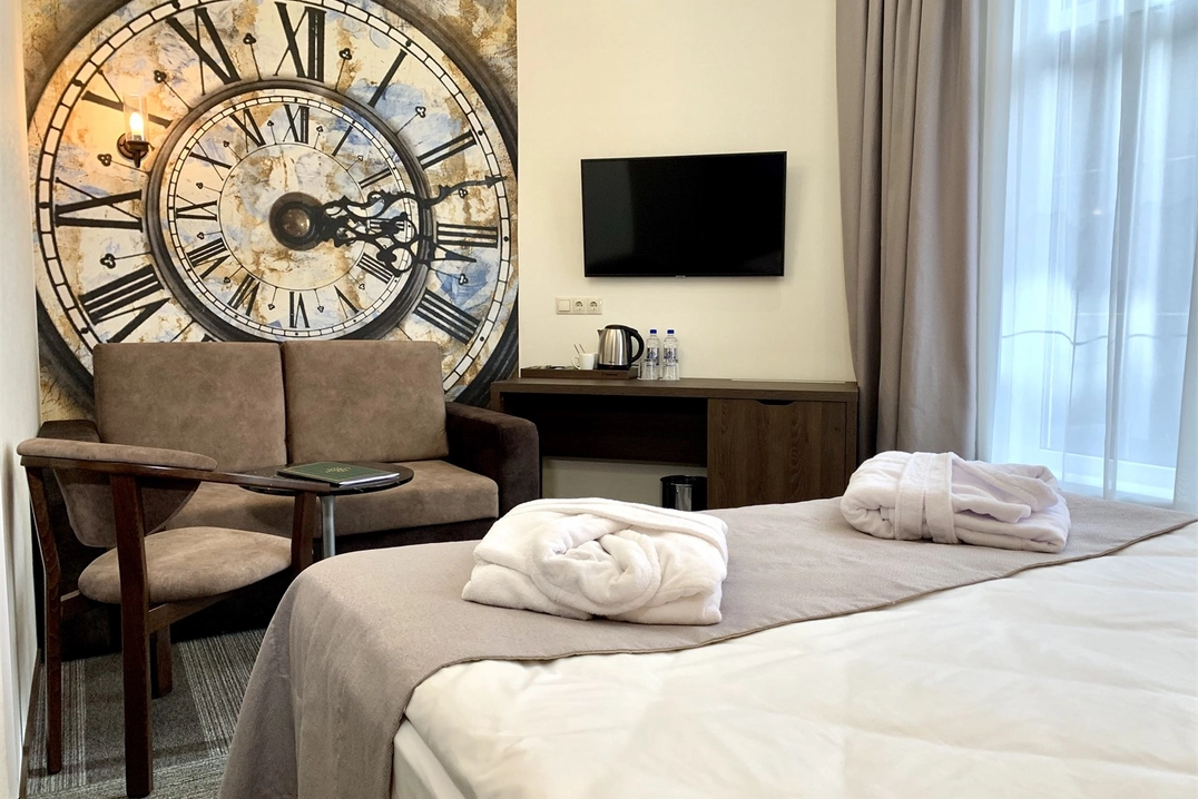 «Стандарт» – это уютный однокомнатный номер, площадью 17-23 кв.м. Вместимость: от 2 до 4 человек в зависимости от номера (2 основных места и 0-2 доп.места (кресло или диван).