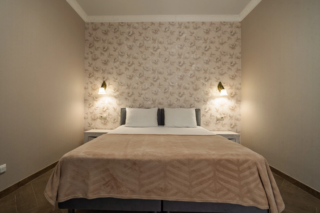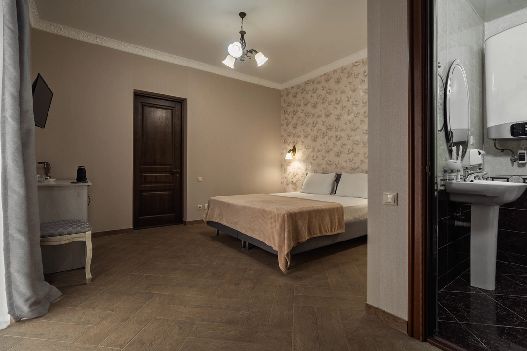 Роскошный номер с двуспальной либо раздельными кроватями и с балконом. Максимальное количество гостей до 3 человек. Площадь номера 19-22 кв.м.