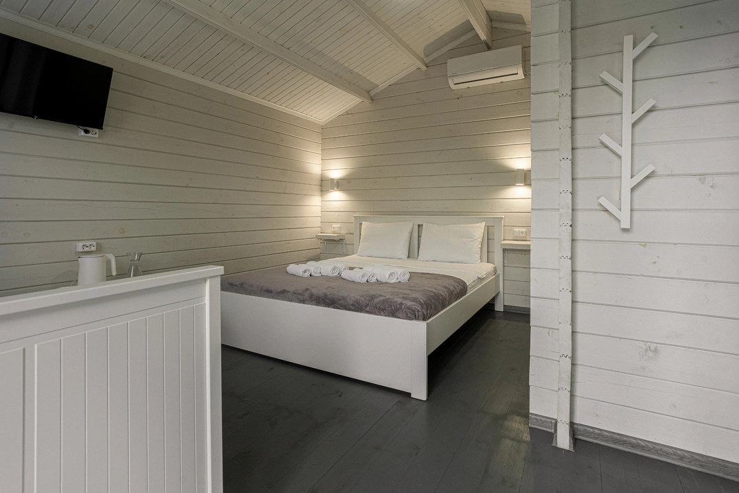 Насладитесь спокойствием и уединением в уютных однокомнатных домиках, зная, что всё необходимое для комфортного пребывания у вас под рукой. Предназначен для комфортного размещения 2-4 человек.