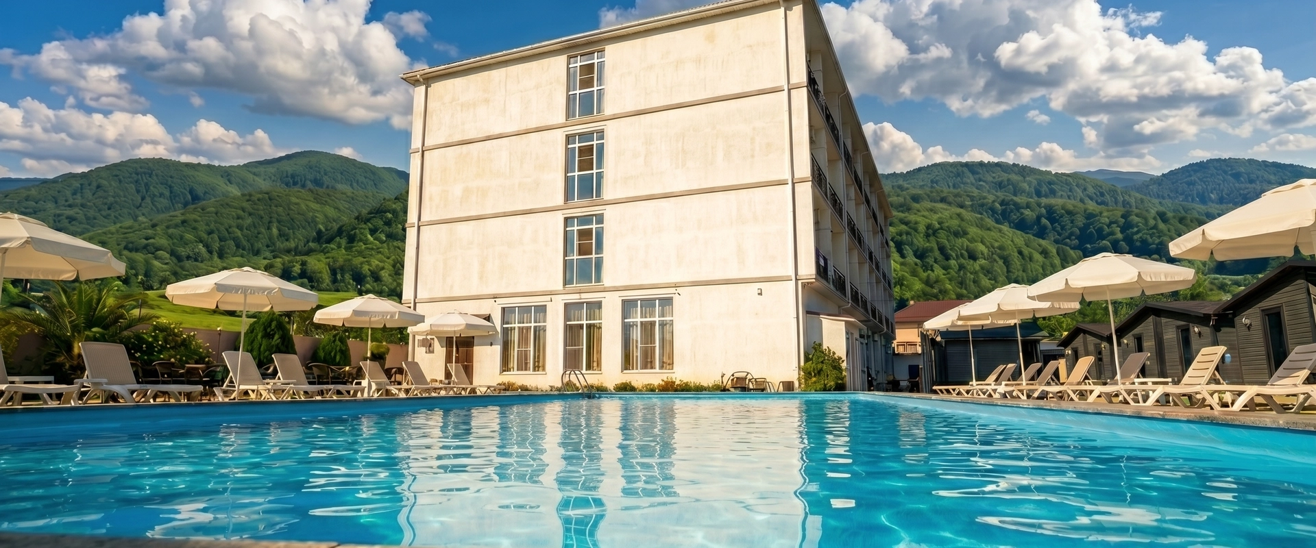 После прохождения паспортного контроля на автовокзале Псоу садитесь на маршрутку № 110. Время в пути — около 30–40 минут.