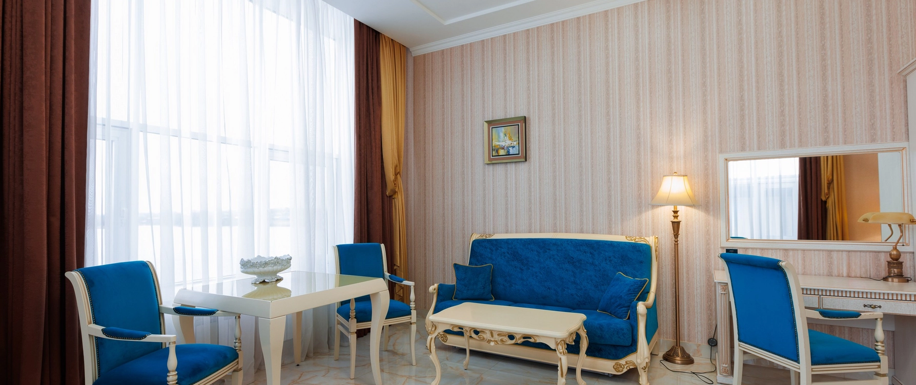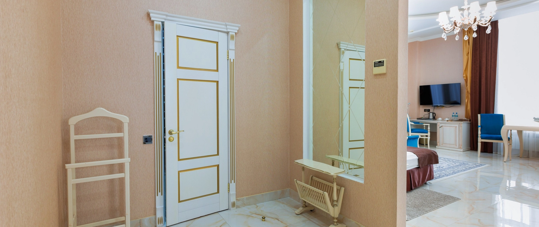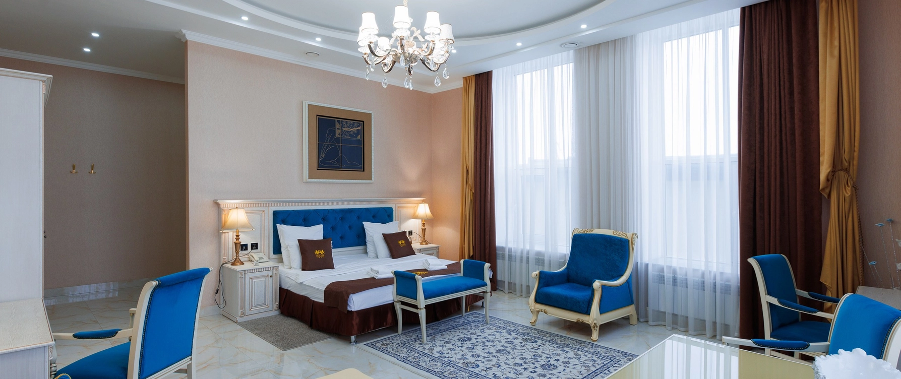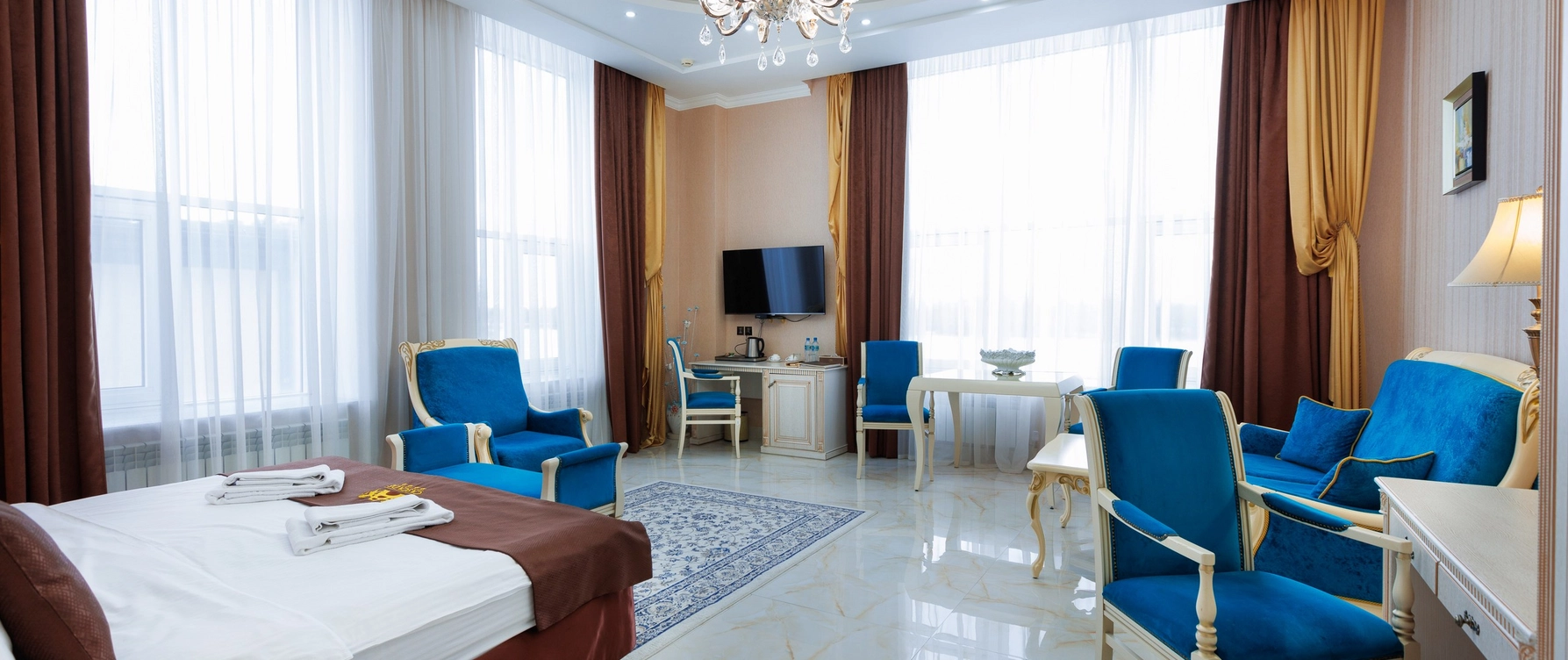 Номер категории "Люкс" - это просторное и стильное помещение, объединяющее в себе гостиную зону с кухонным уголком и отдельную спальню с двуспальной кроватью. Это идеальный выбор для тех, кто ценит пространство, уют и высокий уровень комфорта во время проживания.