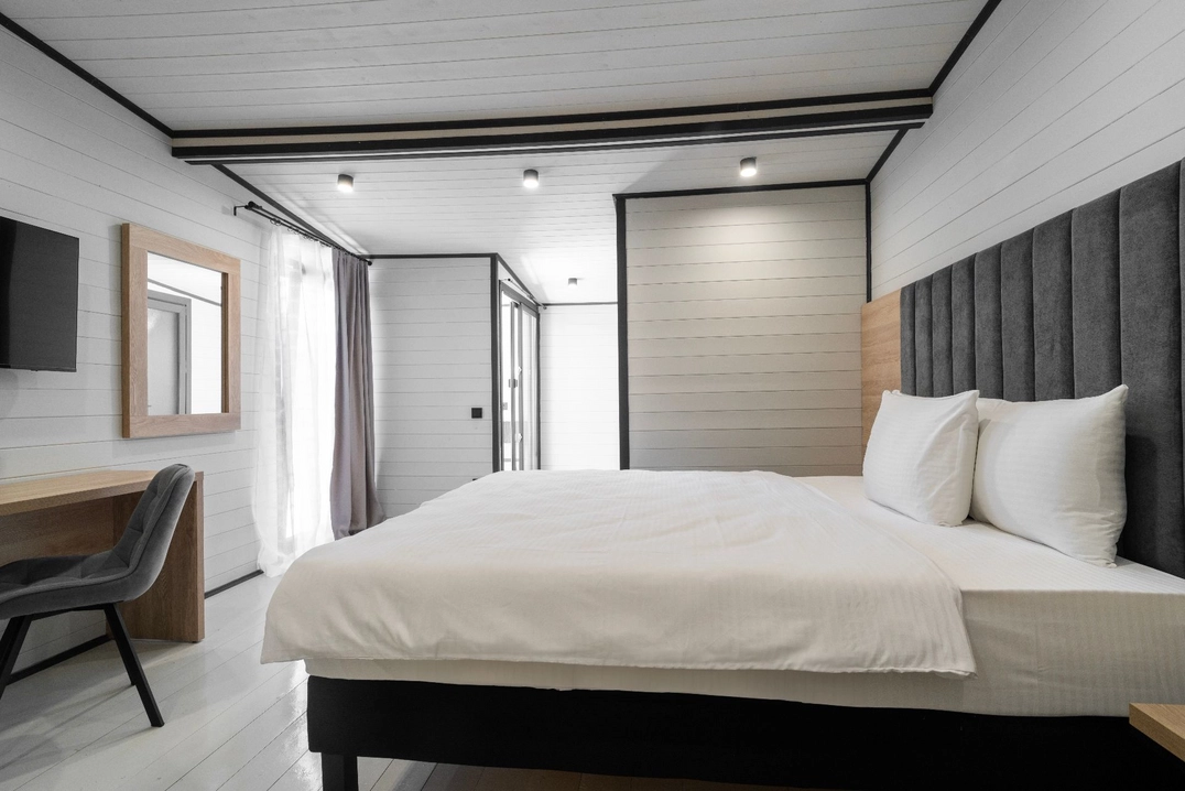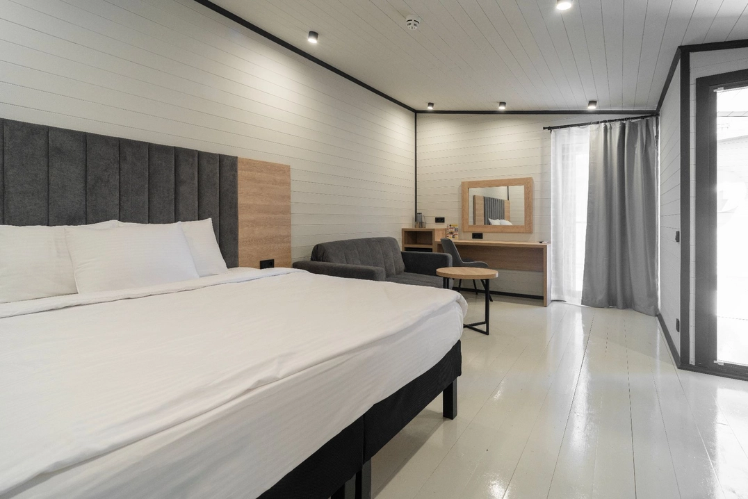 Коттедж Люкс - уютные и стильные домики, созданные специально для комфортного проживания до 7 человек и площадью 50-54 кв. м с современным дизайном.