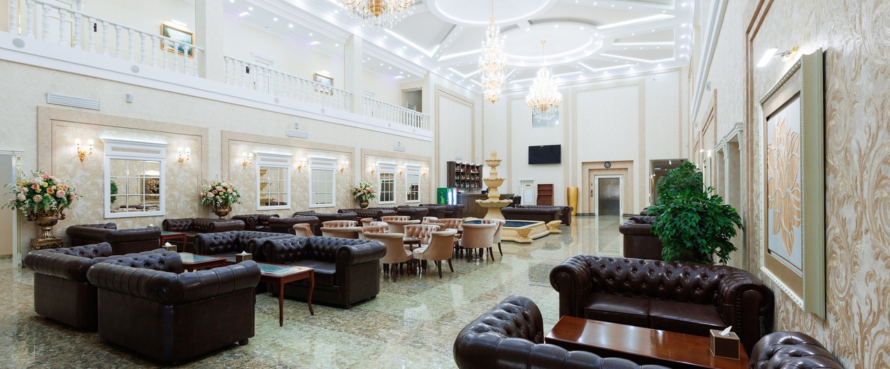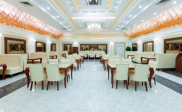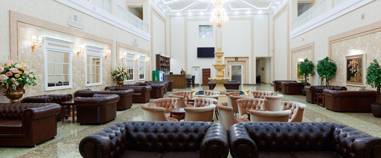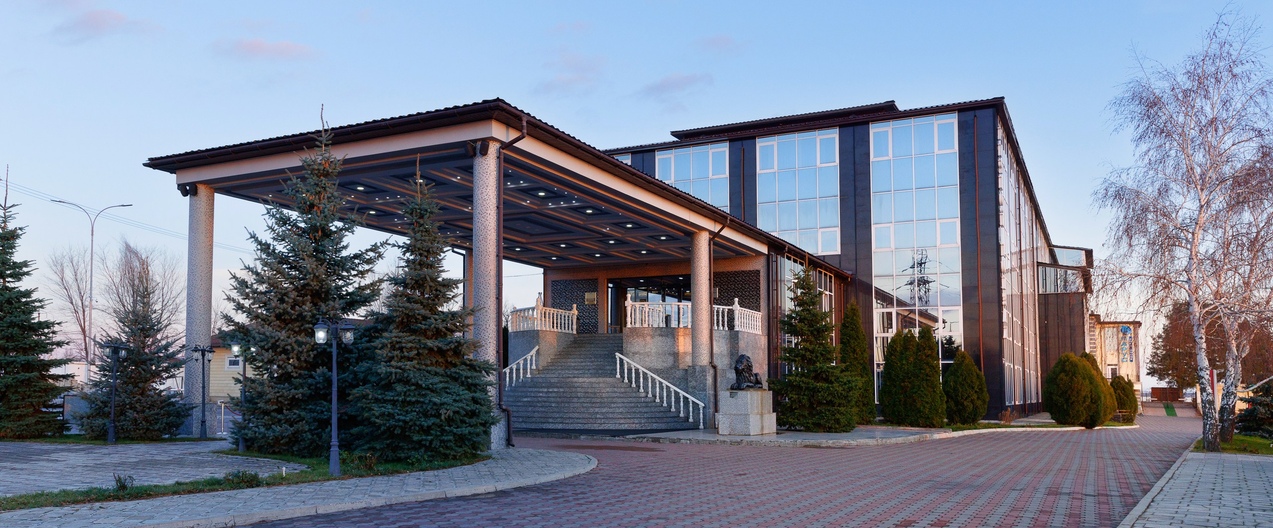 Экстерьер отеля отличается стильной архитектурой, гармонично вписанной в окружающий ландшафт, с ухоженной территорией для отдыха на свежем воздухе, включая зеленые зоны и удобные места для прогулок. Внутренние пространства включают просторные помещения с современным дизайном, большой холл и ресторан, где гости могут насладиться изысканной кухней.