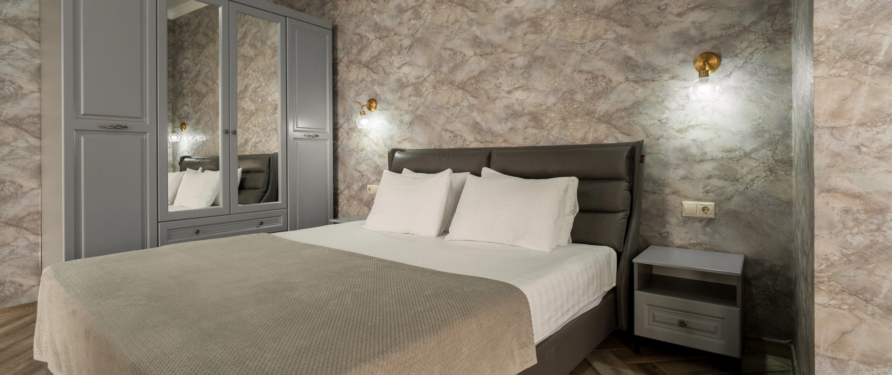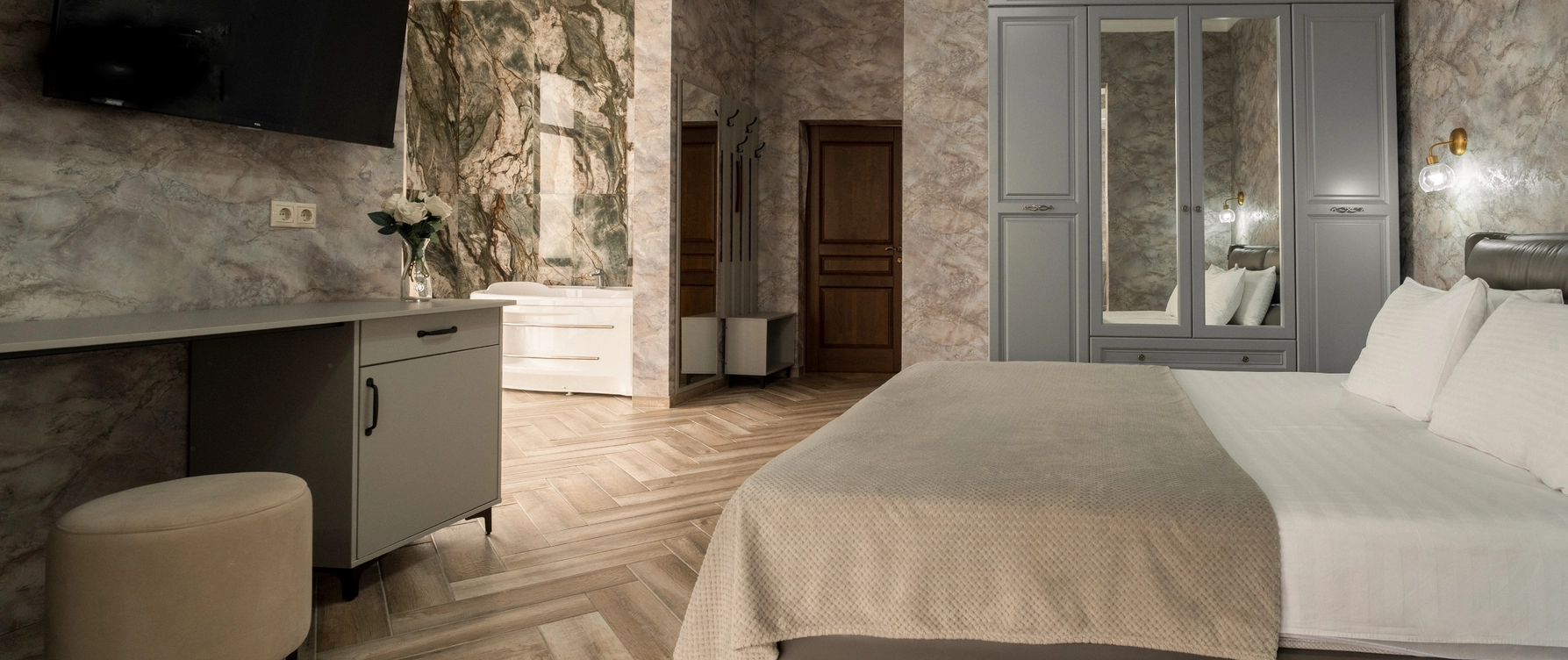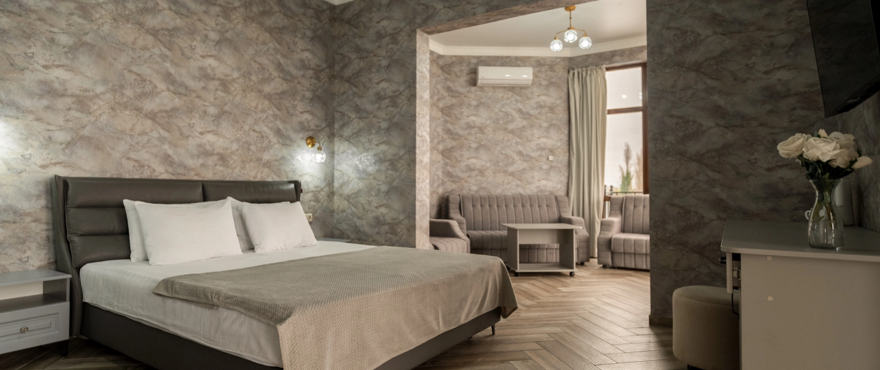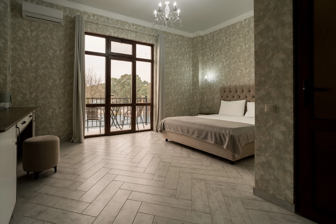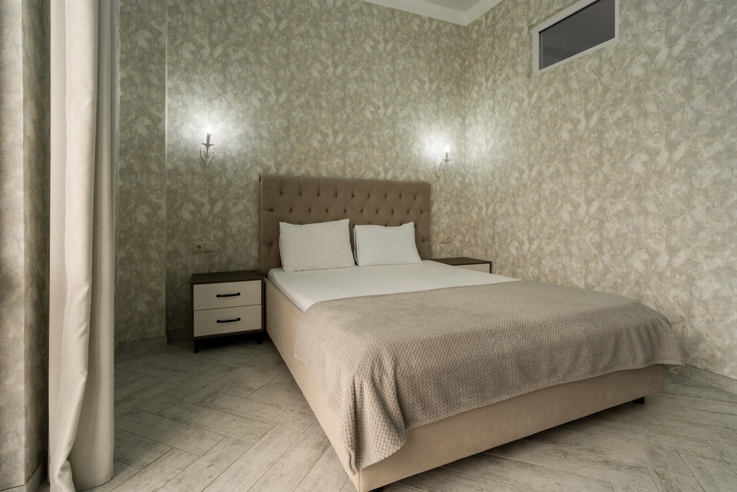 В двухместном номере "Люкс без балкона" есть все, чтобы почувствовать комфорт. Предназначен для комфортного размещения 2-5 человек. Площадь номера 36-42 кв.м.