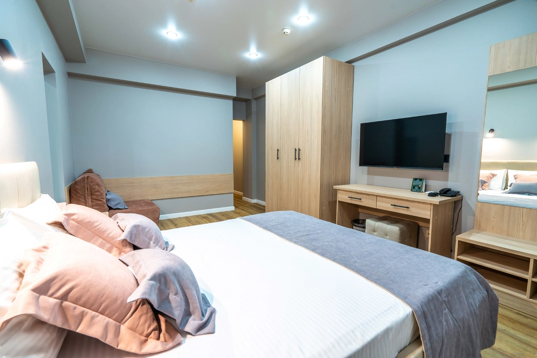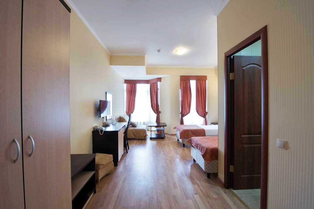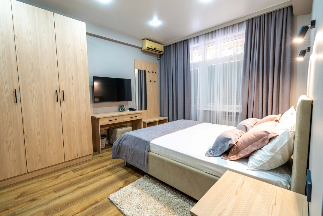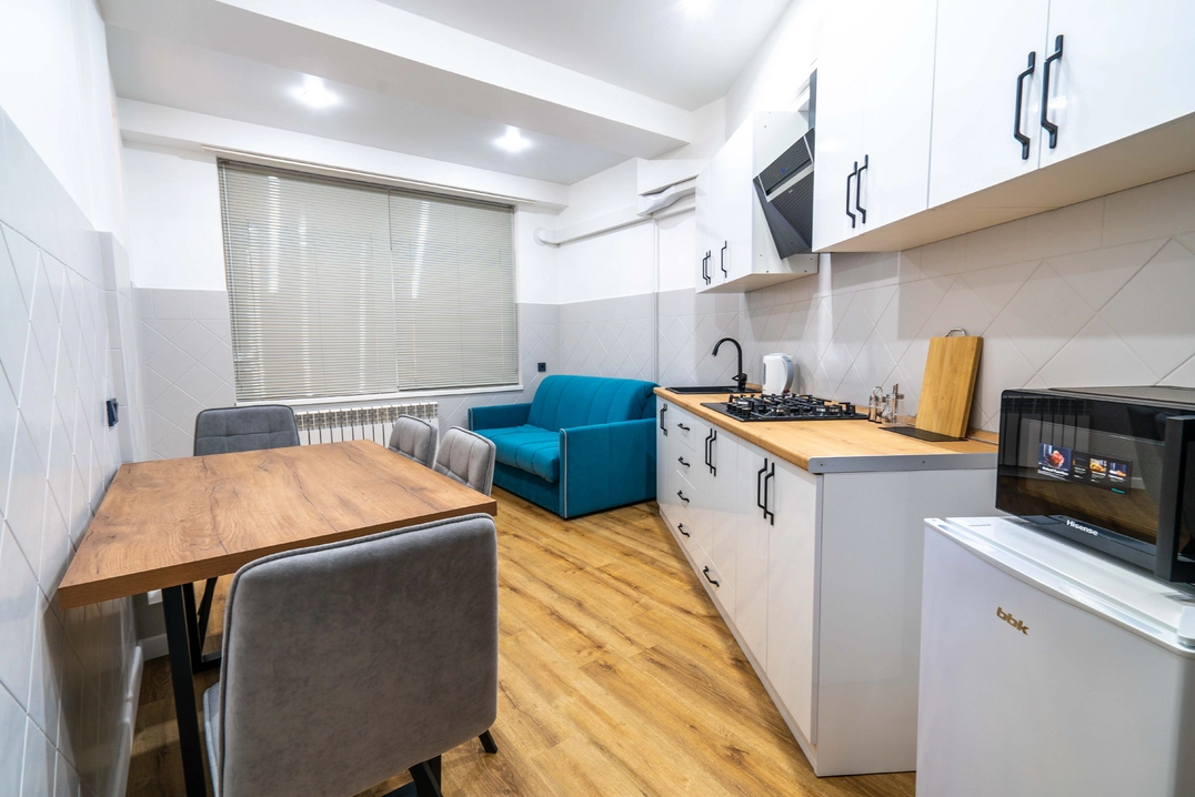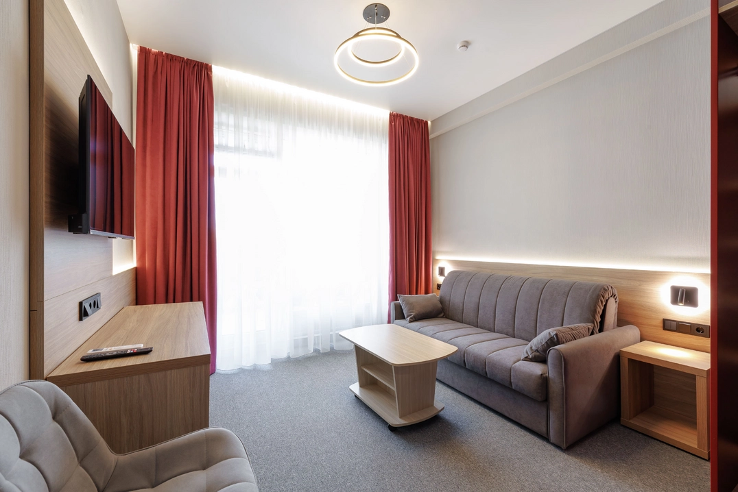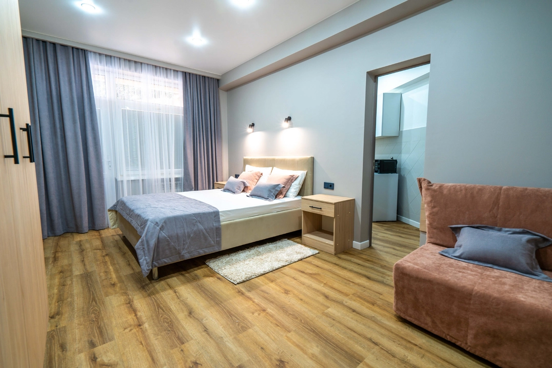 Для самых взыскательных гостей мы предлагаем апартаменты. Просторные, с отдельной гостиной и кухней, они идеально подойдут для длительного проживания или особых случаев. Здесь каждая деталь продумана для того, чтобы ваше пребывание было максимально комфортным и незабываемым.