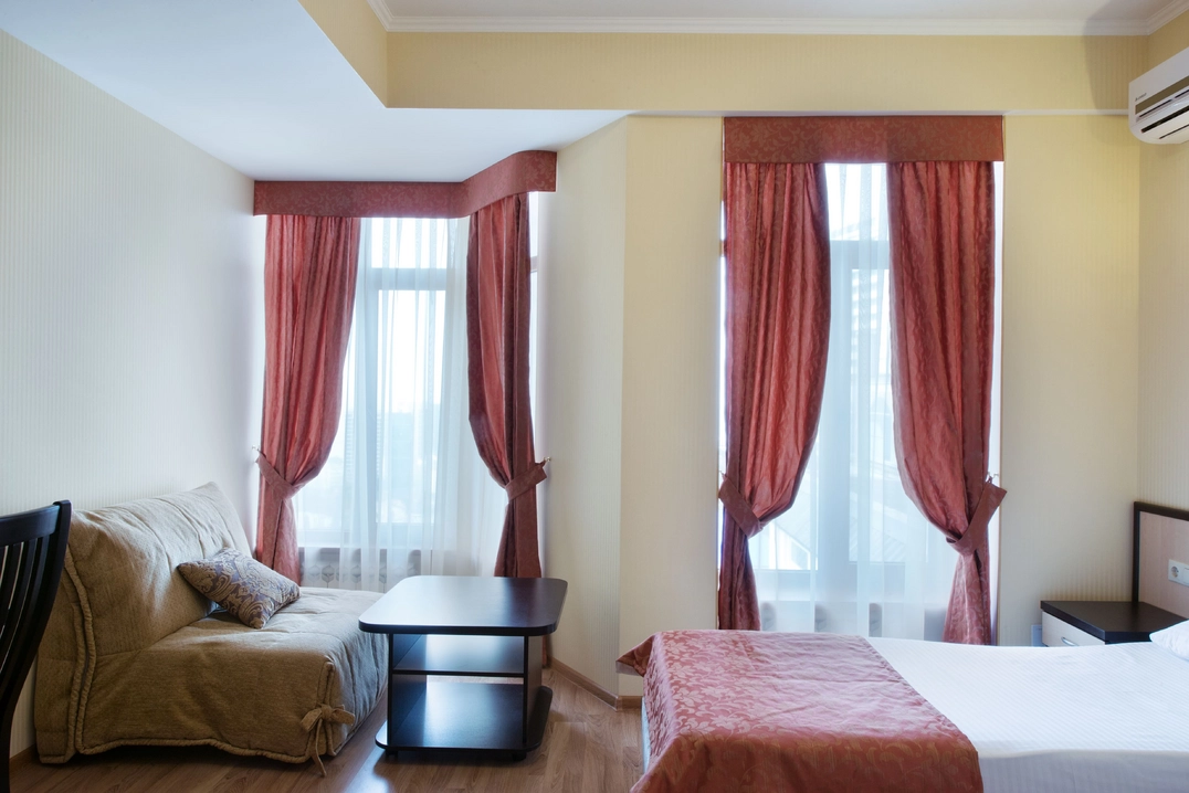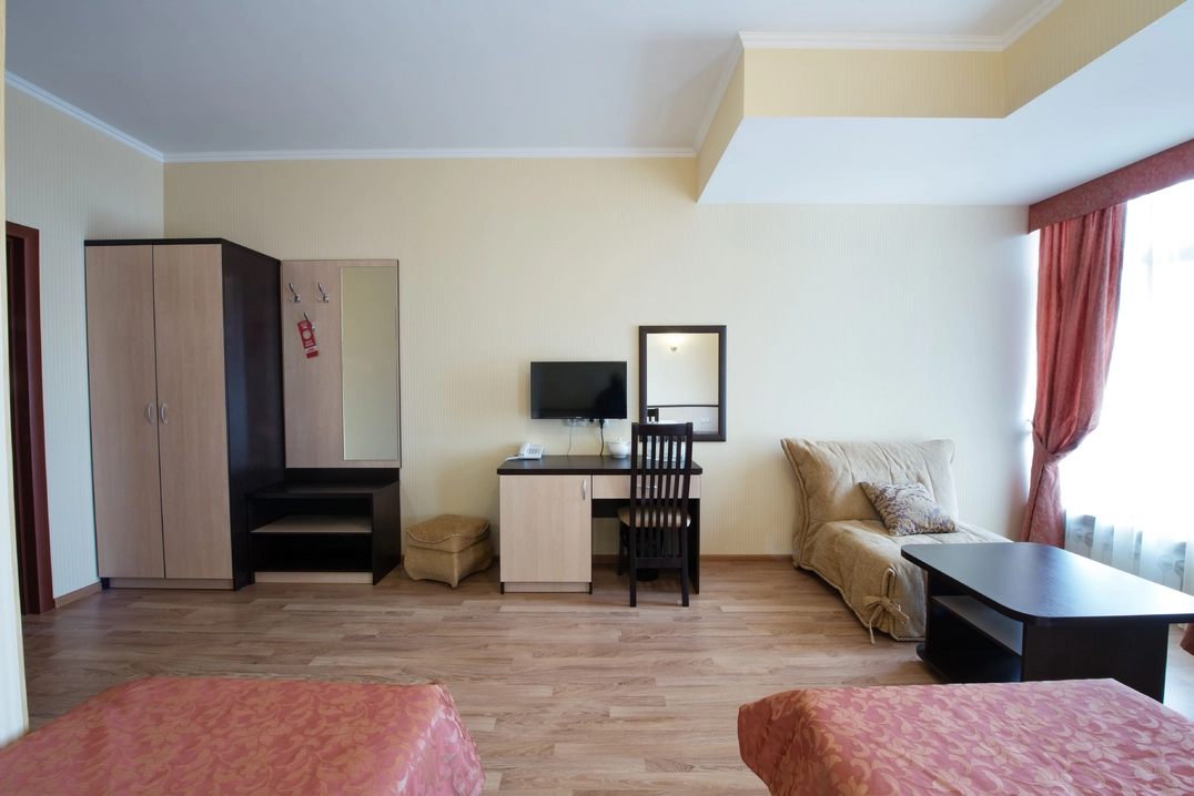 Номер площадью от 16 кв.м. Вместимость до 3 человек. Оплата за третьего гостя взымается отдельно.