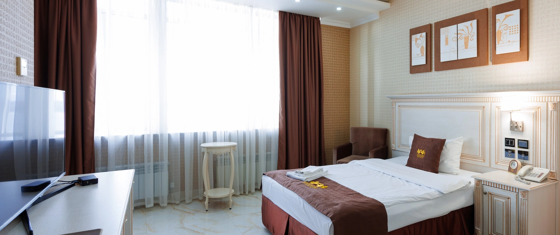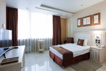 Сингл стандарт в отеле Грейс Каскад — это компактный и комфортный номер площадью около 20-22 кв.м, рассчитанный на одного гостя. В номере имеется удобная кровать, рабочая зона, телевизор и быстрый Wi-Fi для связи и работы.