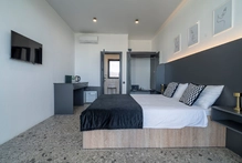 В двухместном номере класса «Люкс с балконом» есть все, чтобы почувствовать уют и комфорт. В апартаментах гостям гарантирован качественный и приятный отдых. Из номеров открывается вид на море и на город. Номер с одной общей кроватью.